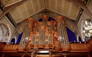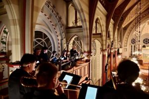 Manfred Cordes hat zudem vor einigen Jahren eine neue Institution zur Förderung junger Musiker auf dem Gebiet der Renaissance und des Frühbarock ins Leben gerufen: das „Europäische Hanse-Ensemble„. Aus Teilnehmern der entsprechenden Akademien und Meisterkurse und einigen „alten Hasen“, zu denen ich mich inzwischen zählen darf, formiert sich immer wieder neu ein passend zur Musik zusammengesuchtes Ensemble für Konzert-Tourneen und Aufnahmen. Ganz aktuell darf ich Teil dieser fantastischen Gruppe sein, und nach einer intensiven Probenphase mit Premierenkonzert im idyllischen Marstrand führte uns das nächste Konzert an die grandiose Orgel der Örgryte nya kyrka in Göteborg, wo wir dieses Programm nun auch auf CD aufnehmen konnten. Weitere Konzerte in Kopenhagen, Hamburg und Lübeck folgen. Bis zum Erscheinen der CD kann man aber einen Live-Eindruck schon (etwas überraschend für uns Beteiligten) auf YouTube bewundern. Und wenn Sie dem Europäischen Hanse-Ensemble auf Facebook oder Instagram folgen, können Sie noch weitere Einblicke in die Tour und ganz allgemein die Arbeit und die (sowohl mitteltönige als auch hervorragende) Stimmung gewinnen.